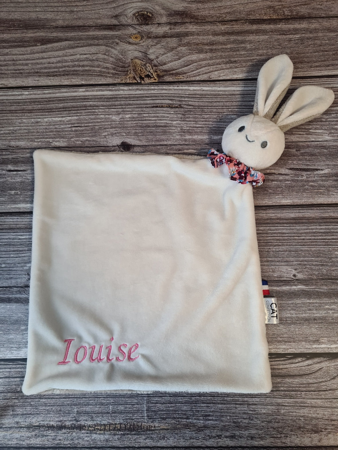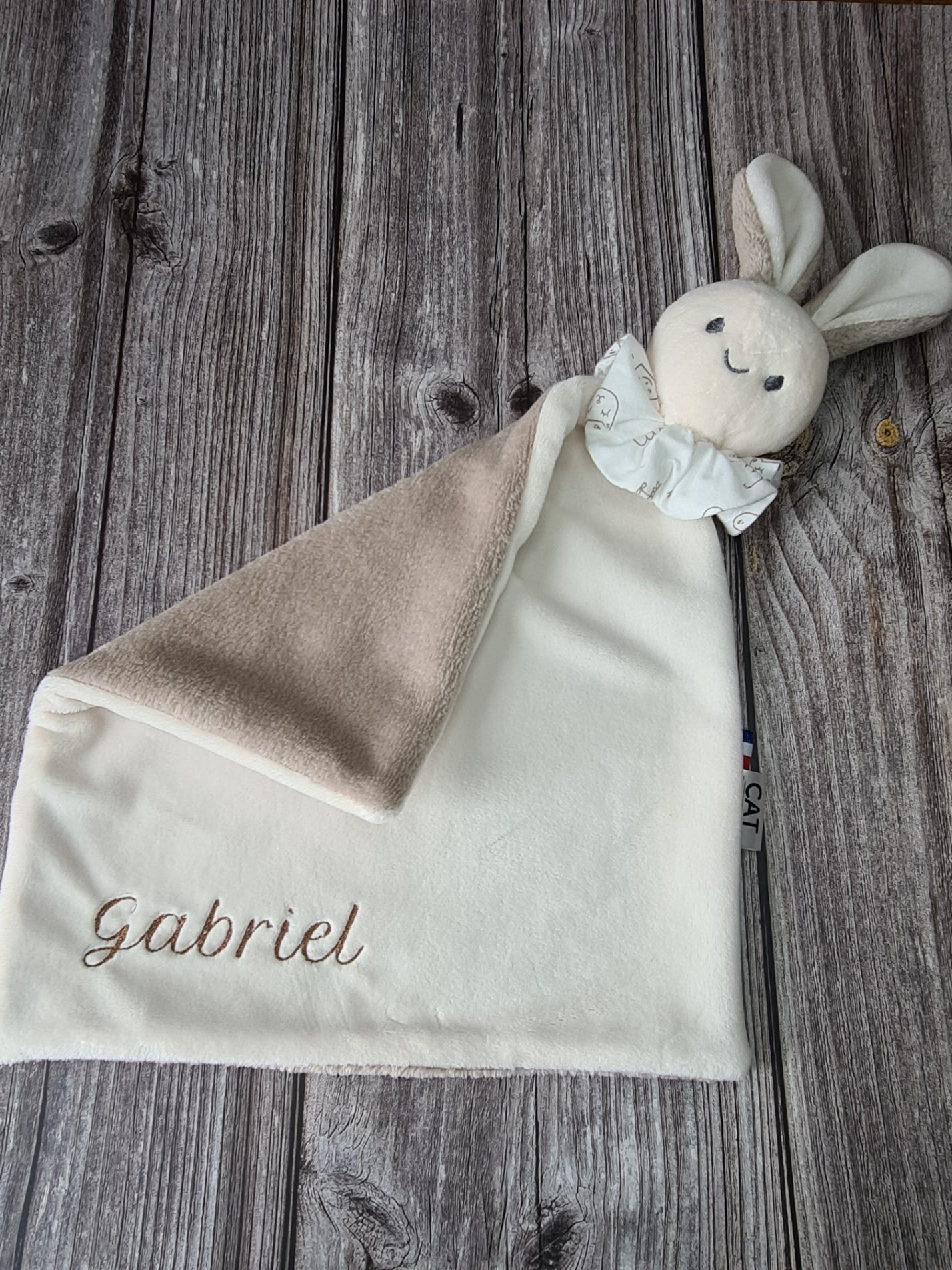 Doudou Lapin en tissu doux certifié Oeko-Tex, alliant confort et sécurité pour les enfants.