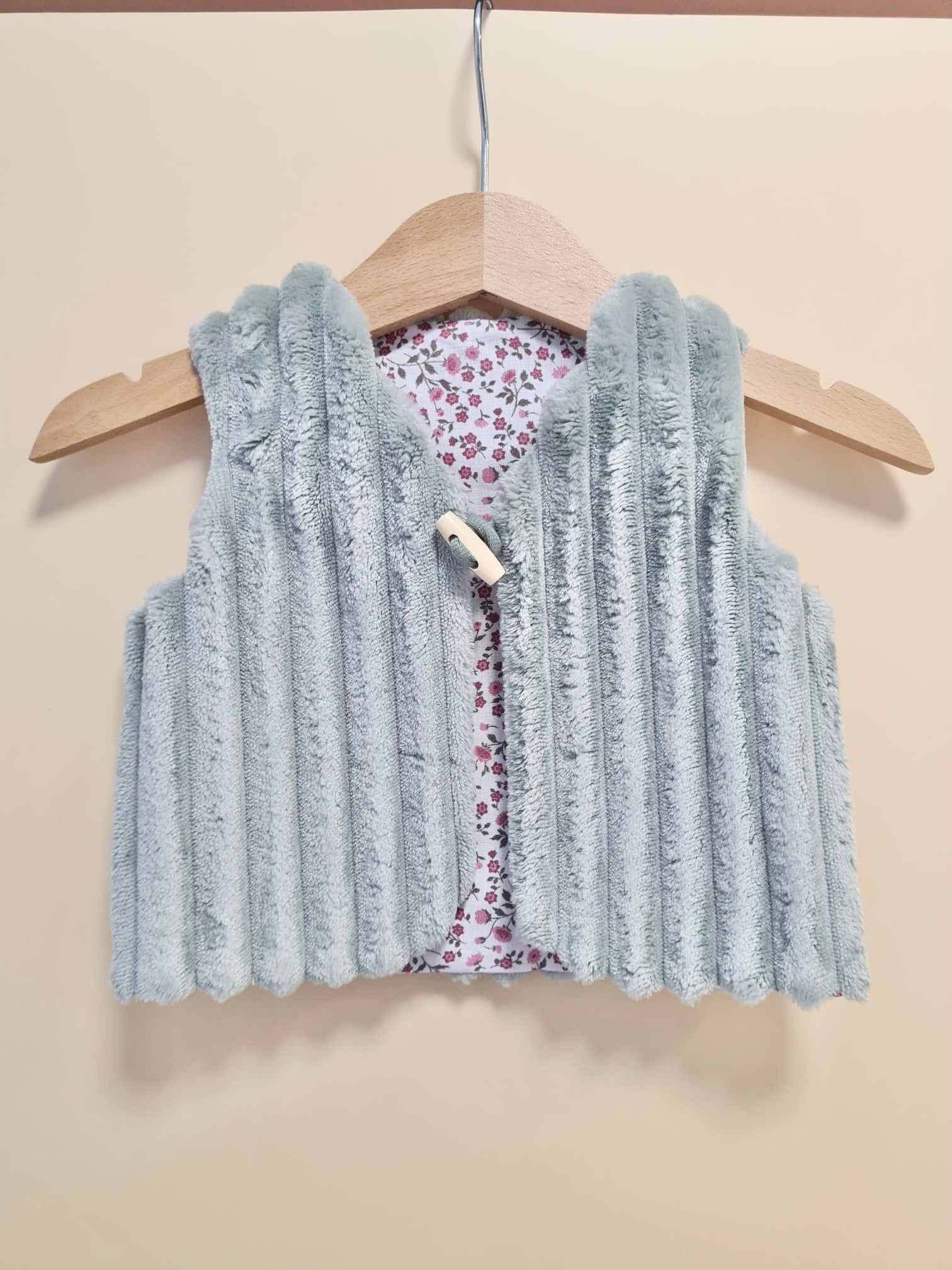 Gilet sans manches réversible pour enfant, à la fois pratique et stylé. Un côté en velours côtelé doux, parfait pour les journées fraîches, et un côté en tissu floral délicat, idéal pour un look printanier ou estival. Polyvalent et modulable, il accompagne l’enfant du 6 mois au 5/6 ans, pour toutes les occasions.